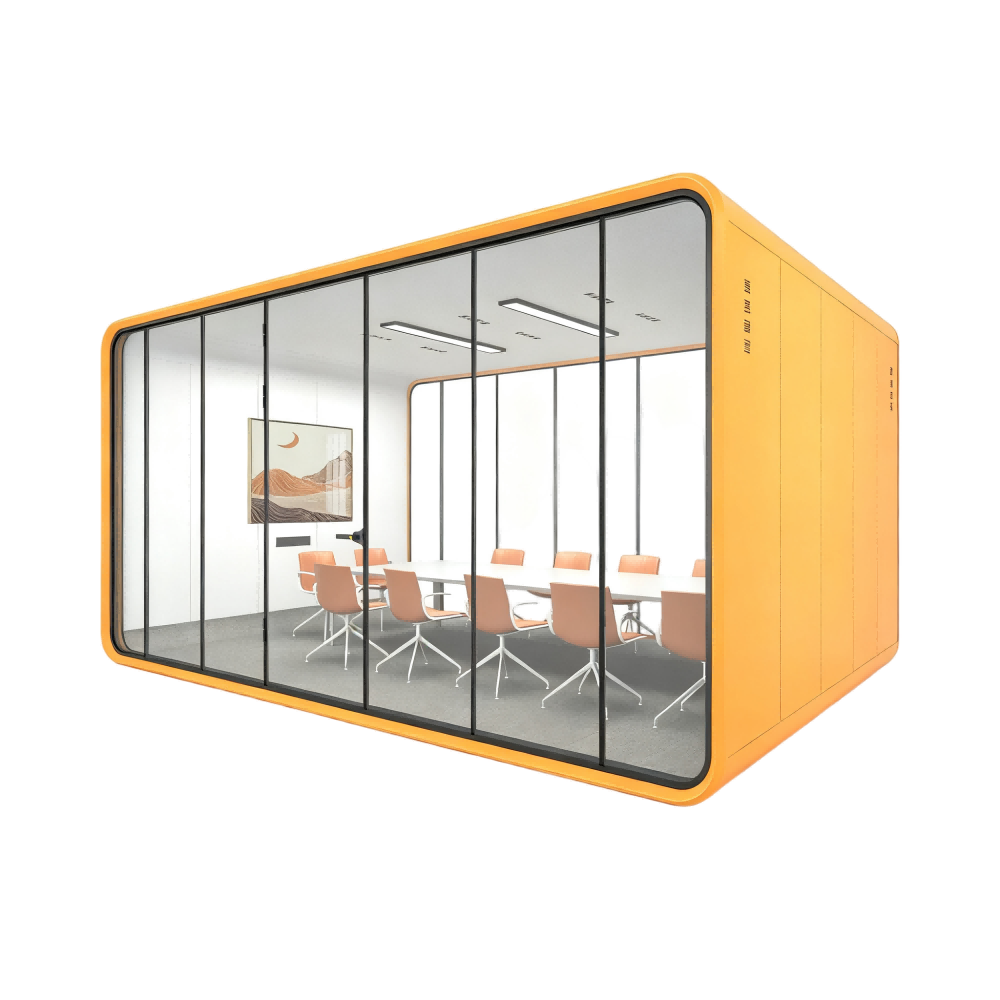 Multi-person meeting pods (or acoustic pods) are self-contained, modular units that create private, soundproof meeting spaces within open offices, co-working centers, and corporate environments. Typically accommodating 8 to 12 people, these units offer a ready solution for focused collaboration.